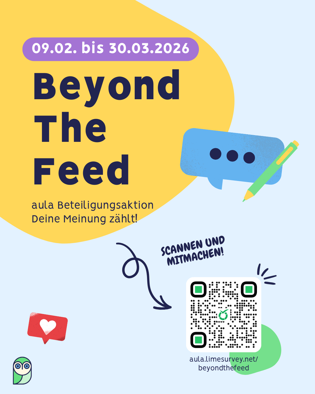 Nehmt an der aula Social-Media-Umfrage teil – die Aktion läuft bis 30. März 2026! Danach wertet aula eure Stimmen aus und übergibt die Ergebnisse direkt an die Politik.