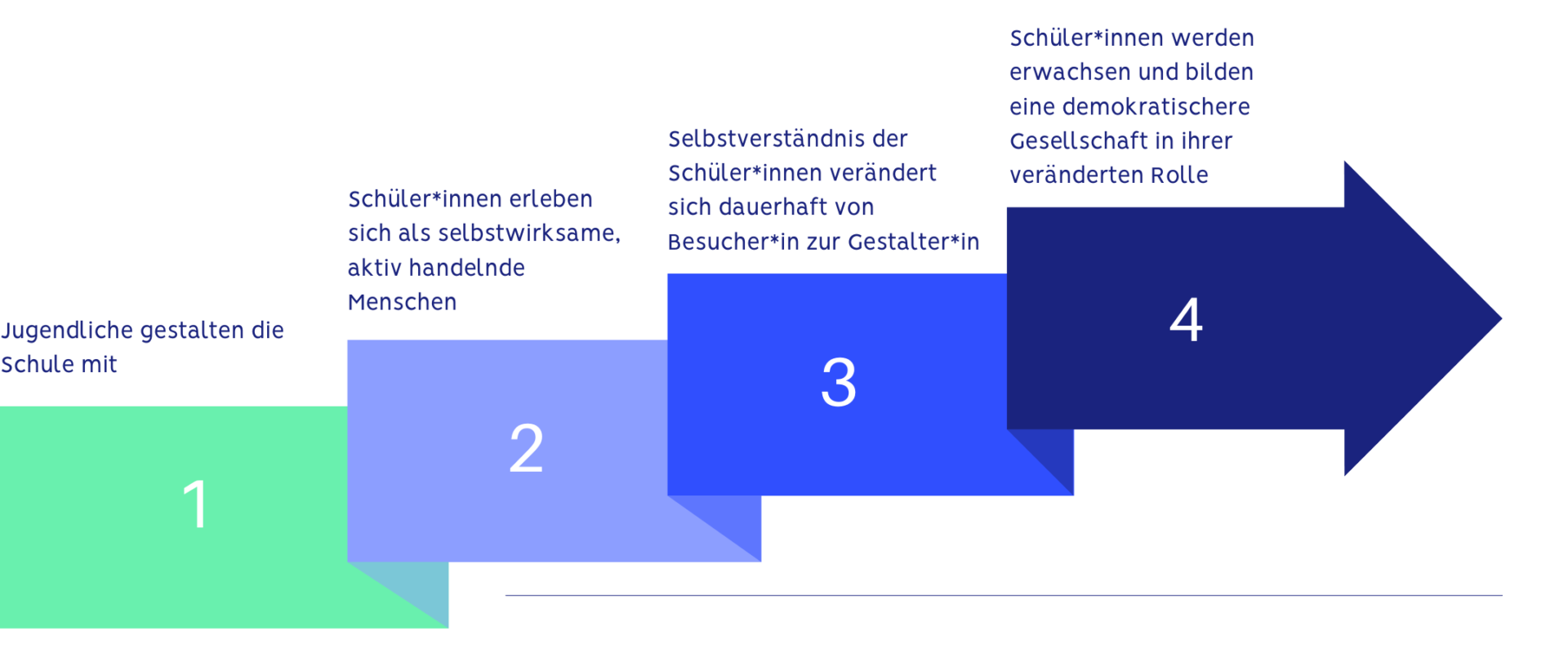 „Zuhören“ und „Gehört werden“ sind dabei bereits ein Erfolg. Auf Jugendliche zuzugehen, sie ernst zu nehmen, ihre Sorgen, Wünsche und Ideen zu hören, kann viel bewirken. Eine demokratische Schulkultur zu schaffen, die es allen Schüler*innen ermöglicht, selbst aktiv zu werden, ist unumgänglich für eine demokratische Gesellschaft und ein vom Bildungssystem einzufordernder Fortschritt.